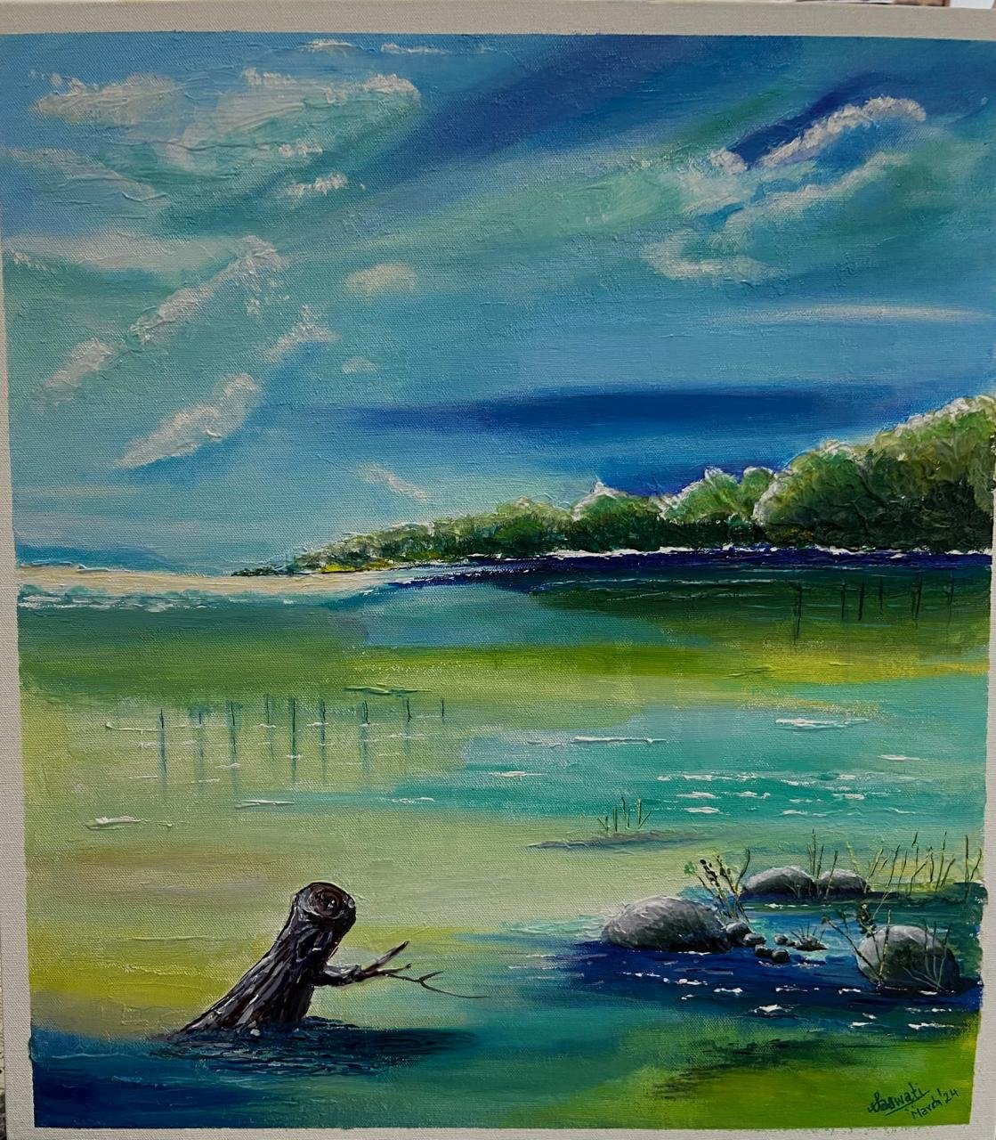 Beach Landscape 3D – Textured Acrylic Painting size 18 x 24 inches